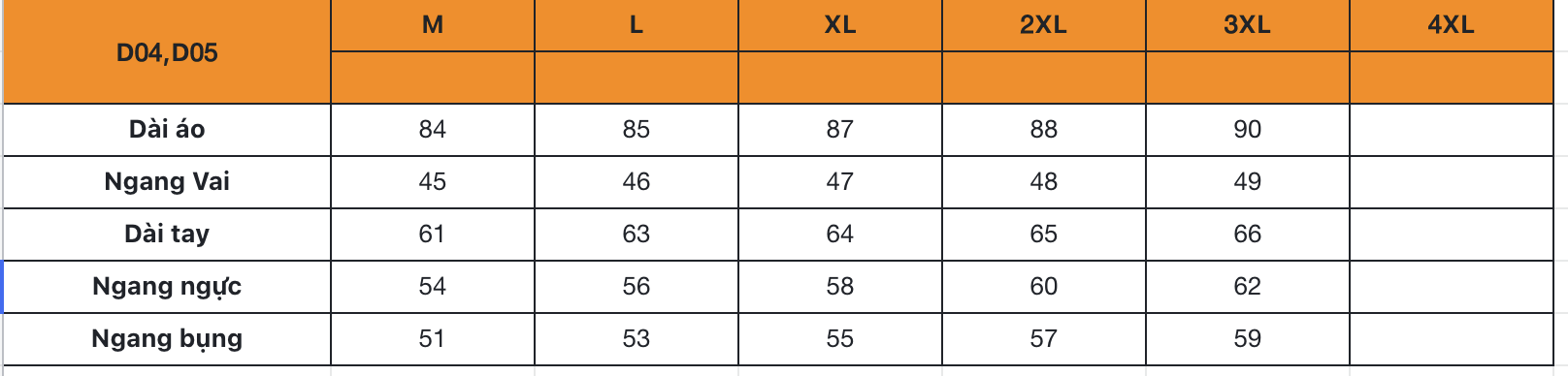 SIZE ÁO: